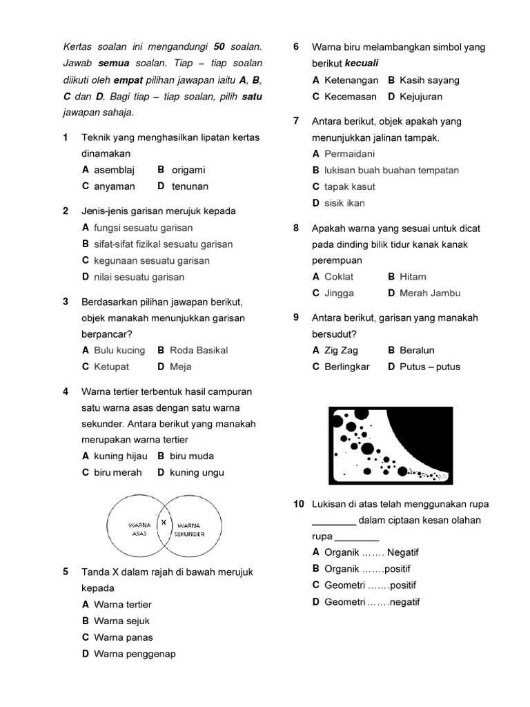 Soalan Objektif Seni Tingkatan 3 Pdf